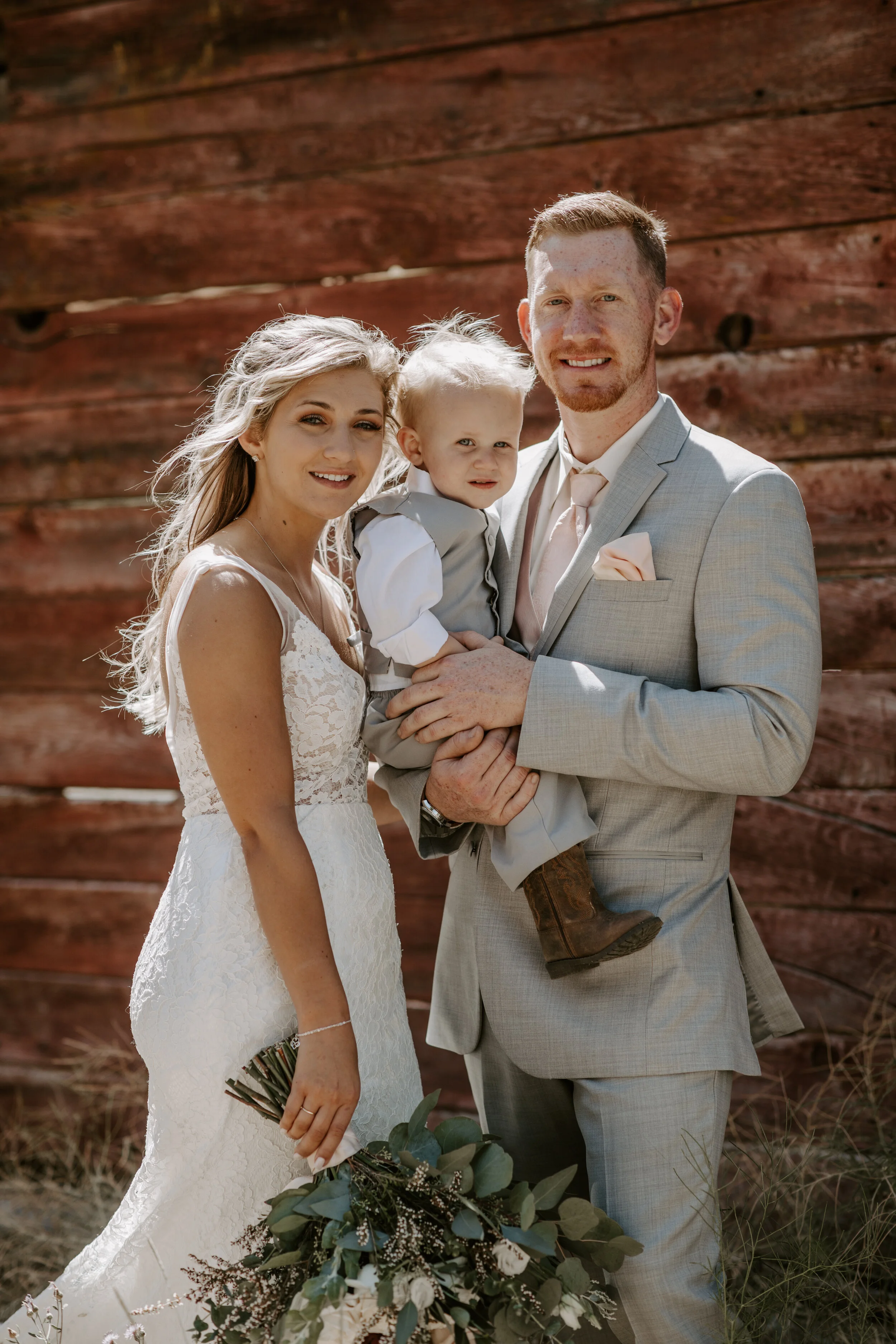 The day was beautiful: Sunny, warm weather, lots of wind, and lots of love flowing around. Their little boy was a trooper throughout the entire day and looked like a mini groomsman with his cowboy boots and grey suit. Erin Perkins captured everything perfectly and was, of course, a joy to work with.